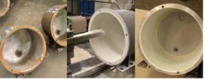 US125: Holy Roof Refurbishment Resin Plant Process Water Treatment Tank Client: Resin Plant Application Date: Spring 2019 Scope of work: Client previously contracted for a competitor to blast and coat externals of a large process tank. Three months after completion, the customer found the contractor had blasted hundreds of hold in the roof of the tank and