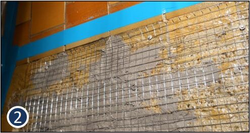 concrete anchors. - Apply Corrocoat Renderpol as a plaster over the mesh to provide a mechanical connection to the concrete.