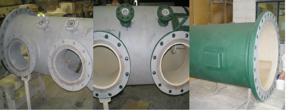 Internals of new vessel protected against sea water damage using Corroglass 600 Series and Polyglass VEF. Rebate flanges to protect against crevice corrosion. Terminate coating on steel rings.