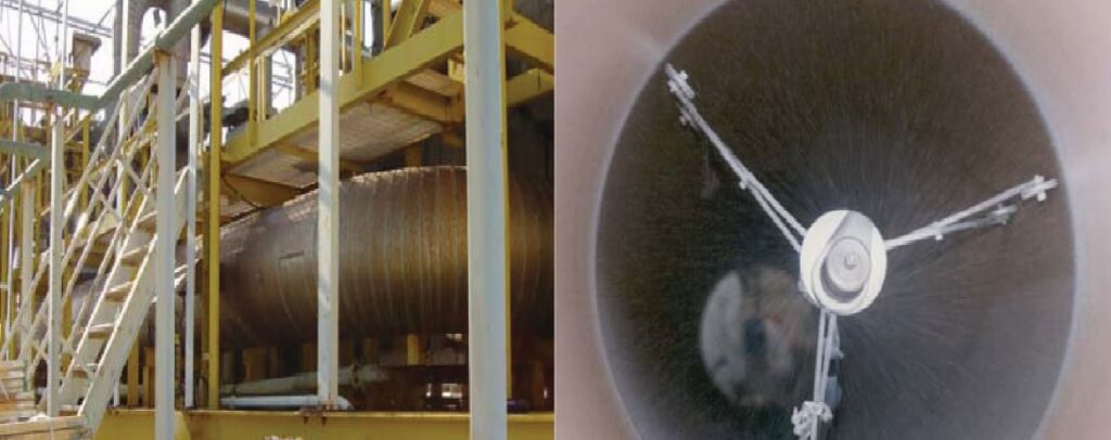 Right: Agmec internal pipe spray machine.