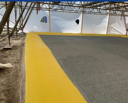 – Polyglass VEFWR spray applied and broom finished to create non-skid texture and chemical resistance.