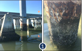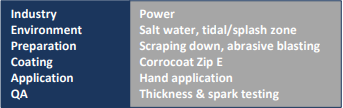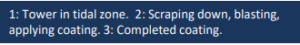 extremely corrosive environment. The tower was sited in salt water in the splash zone which creates an