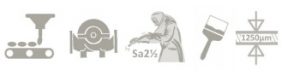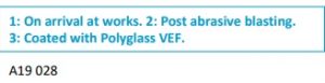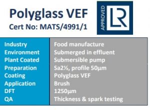 abrasive blasted to Sa2½, and that a specified a surface profile of 50µm be achieved. The external surface of the pump was then coated with Polyglass VEF to a DFT of 1250µm.