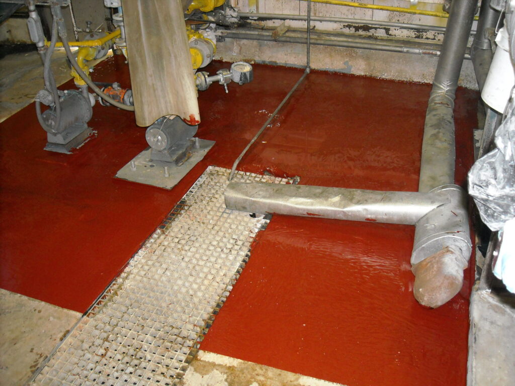 Photo: Plasmet AR3 Lining System to refurbish and protect concrete against 98% Sulfuric Acid; near a pump base at a wastewater plant.