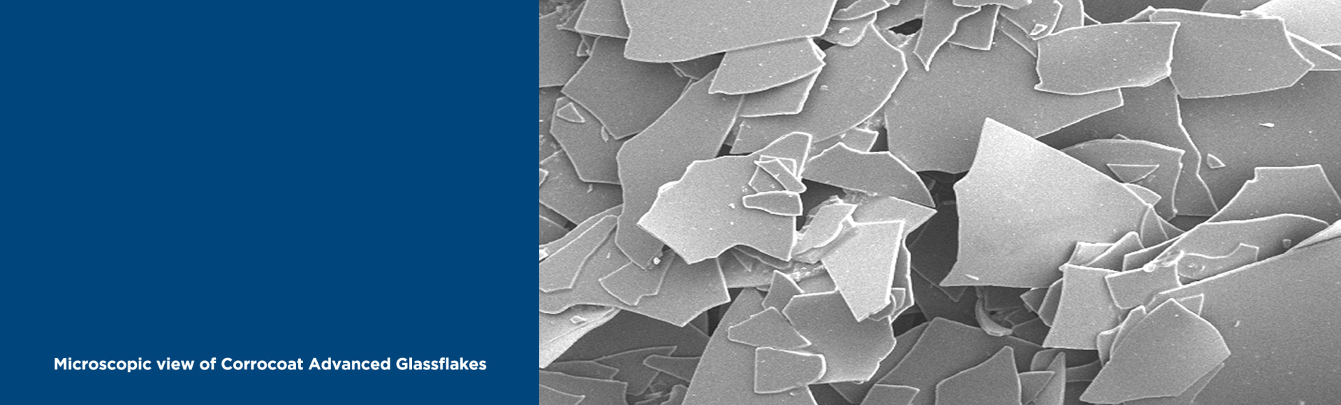 Corrocoat materials contain multiple layers of micro flakes of glass, bound together with high performance resins. The resins are solvent free, 100% solids polymers. Many different types of flake glass filler exist. The thickness of the flakes, quality of flakes, quantity of flakes and number of layers of flake will affect the permeation resistance and subsequent long-term life expectancy of the coating. Other factors such as the packing density of flake and optimum flake loading levels also influence the rate of moisture vapor transmission. The flakes are relatively impermeable and create a long tortuous winding path for small molecules to follow when they pass through the coating to the steel. The longer the winding path length, the longer the time to permeate the coating and the longer the life expectancy.